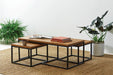 | In tight spaces or wide open venues, this set of three nesting tables delivers a clear blend of modern elegance and space-saving configurations. Take in the versatile natural finish of a solid mango top crowning each table. With black iron bases in cube-style linear form, an industrial attitude sneaks in to stylize this set. Find a fun arrangement to create intrigue and interest, nesting tables together, or use each individually. This sleek nesting table set tucks away for easy storage. |