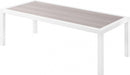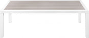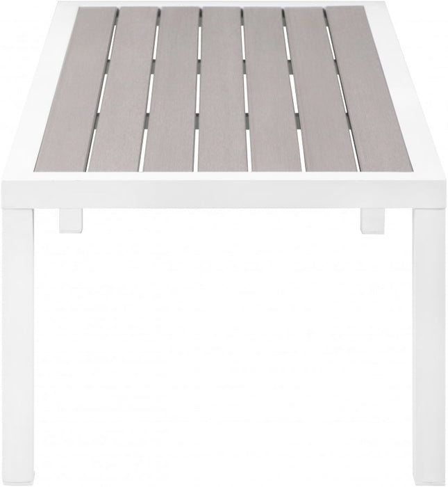 Add the comforts of indoors to your outdoor living space with this Nizuc coffee table. This sophisticated modern table is an ideal spot for resting a frosty drink on a sunny day. The top of the table is made from light grey polywood and is slatted, so moisture dissipates easily through its cracks. An aluminum frame adds resilient durability to this table’s design, ensuring it lasts and lasts, season after season.