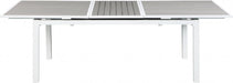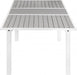 Get ready for outdoor living in high style with this Nizuc outdoor extendable patio table. Ideal for entertaining any time of the year, this handsome table features light grey polywood and white aluminum for a look that’s beautiful, clean and crisp. Customize the look of your outdoor entertaining space by adding the matching chairs, end tables and other items.