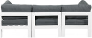 Pick and choose your favorites from the Nizuc collection to create a modular seating group the whole gang will enjoy. The sturdy aluminum frame provides dependable support for friends and family as they relax and unwind, and the resilient grey waterproof fabric stands up to the elements without losing its beautiful demeanor, so you can count on it lasting for the long haul. Latches beneath these seating pieces help you easily attach them to one another for convenient setup.