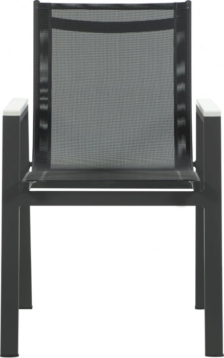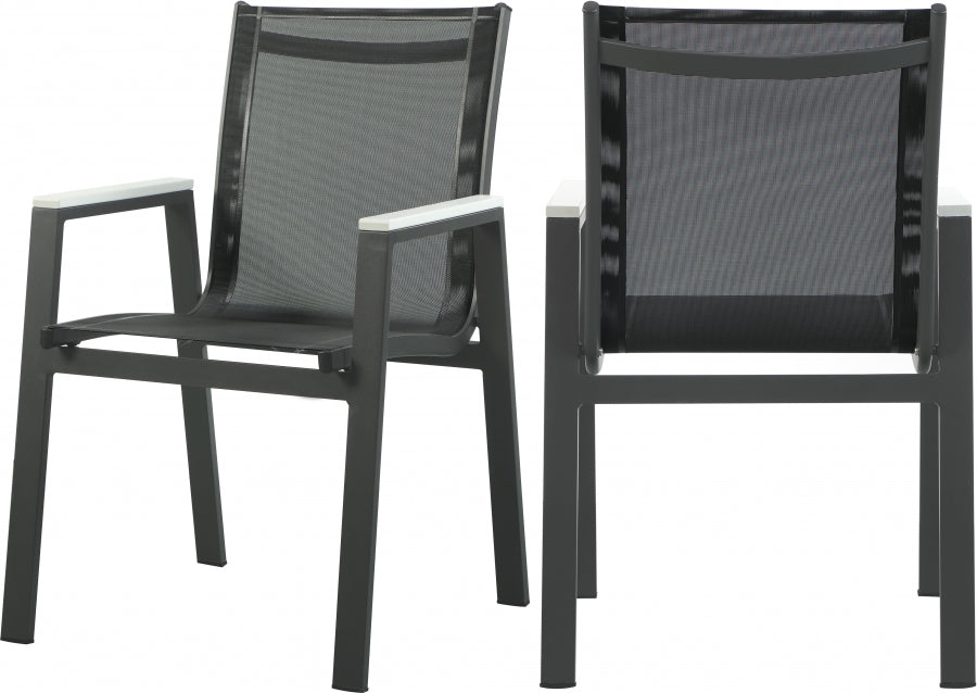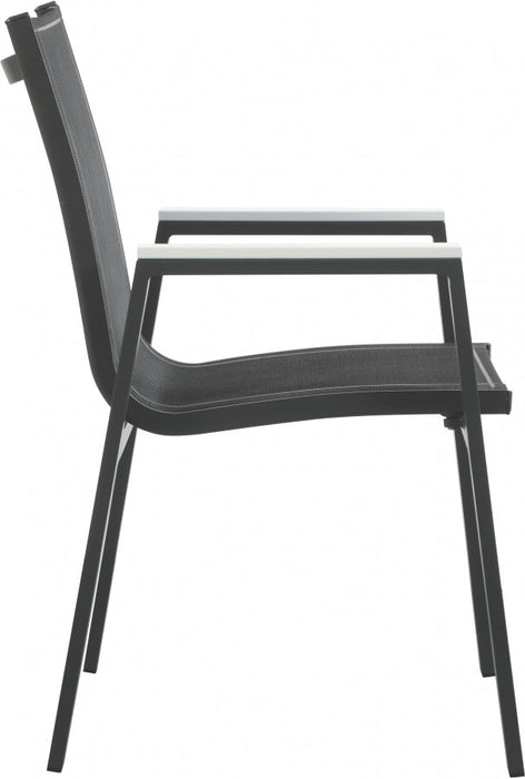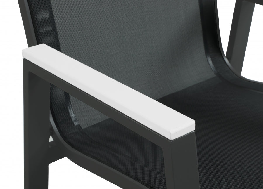 Expand your outdoor entertaining prowess with his Nizuc outdoor patio dining chair. This handsome chair features resilient black mesh fabric that’s waterproof, making it ideal for outdoor use, even in inclement weather. The aluminum frame is durable and tough, so you can count on this outdoor seat to withstand the rigors or use without skipping a beat. Polywood trim on the arms contrasts quite nicely with the chair, lending it a modern feel. Pair this Nizuc chair with the table in the same collection for a cohesive outdoor entertaining group.