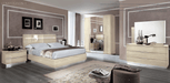 PLATINUM bedroom furniture set in Beige. Modern lines combined with Art Deco’ details. A beveled mirror and wave shaped handles give a typical Made in Italy look to this bedroom. Wood diamond shaped headboard with LED light insert. Optional storage kit with lift mechanism.
