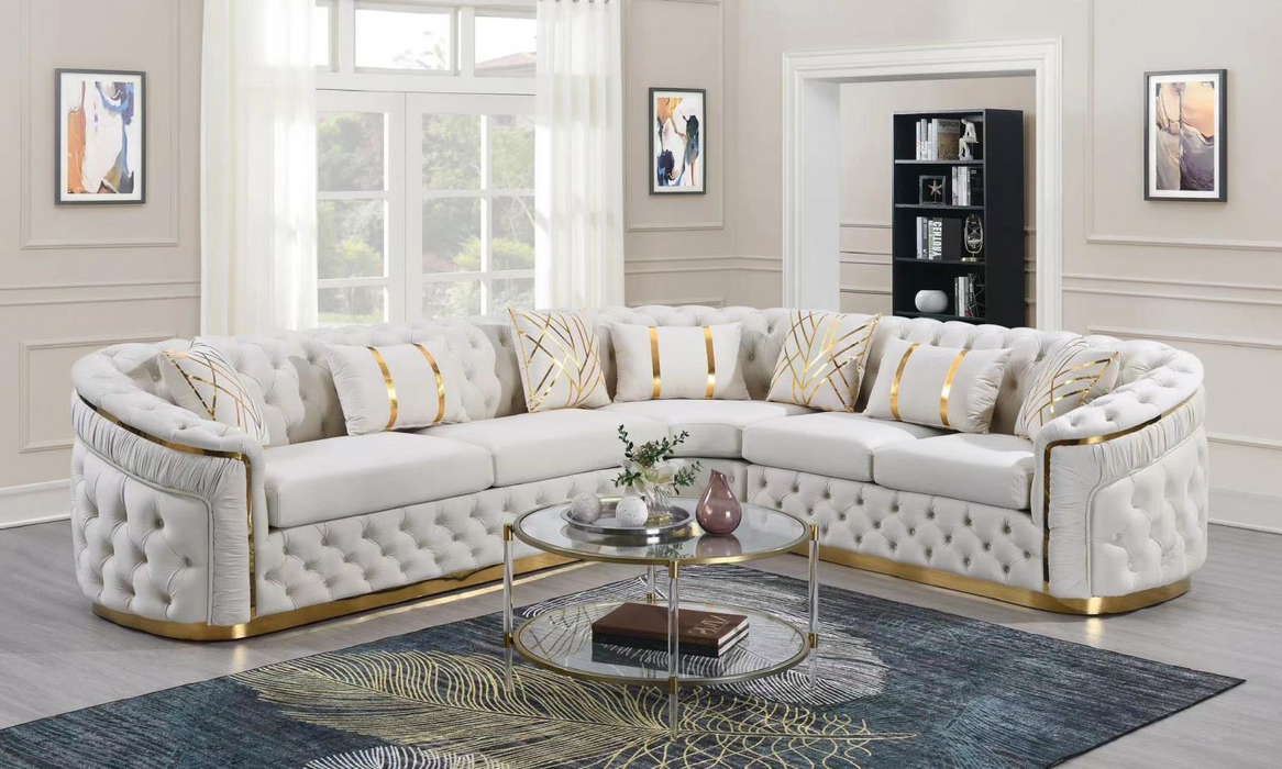 Queen Cream Velvet 3 Piece Sectional