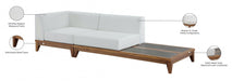 Build the seating group you need for your outdoor entertaining area with one or more selections from the Rio collection including this Rio outdoor off-white waterproof modular sofa. A solid acacia wood frame provides sturdy dependability for this sofa, ensuring its long-lasting performance and impeccable beauty. The plump cushions are encased in resilient waterproof fabric to keep them looking luxuriously beautiful for seasons to come. Attach other units in the collection to this sofa with convenient latches.