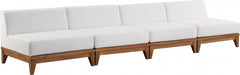 Build the seating group you need for your outdoor entertaining area with one or more selections from the Rio collection including this Rio outdoor off-white waterproof modular sofa. A solid acacia wood frame provides sturdy dependability for this sofa, ensuring its long-lasting performance and impeccable beauty. The plump cushions are encased in resilient waterproof fabric to keep them looking luxuriously beautiful for seasons to come. Attach other units in the collection to this sofa with convenient latches.