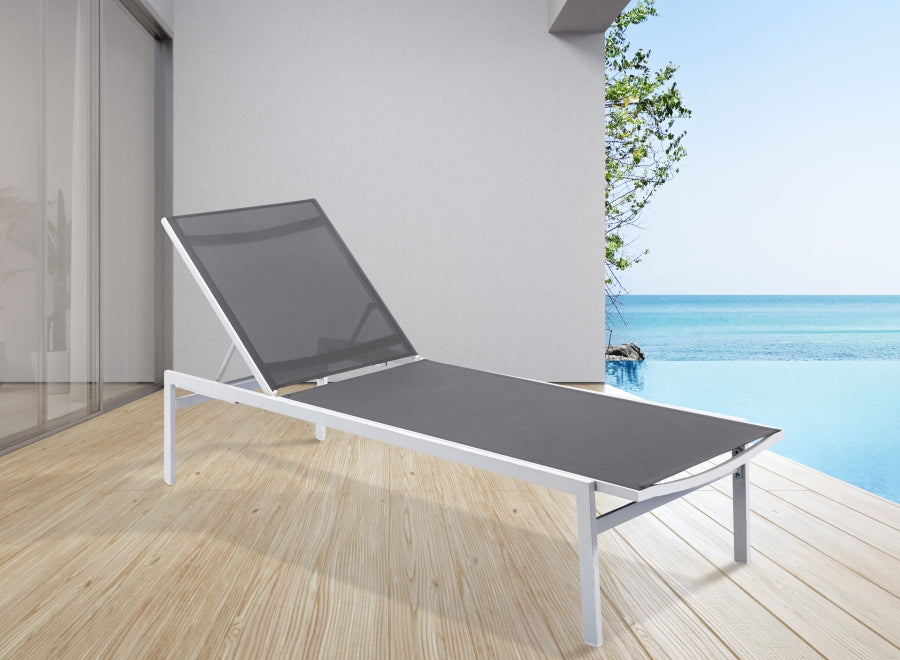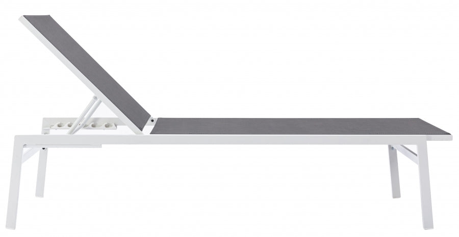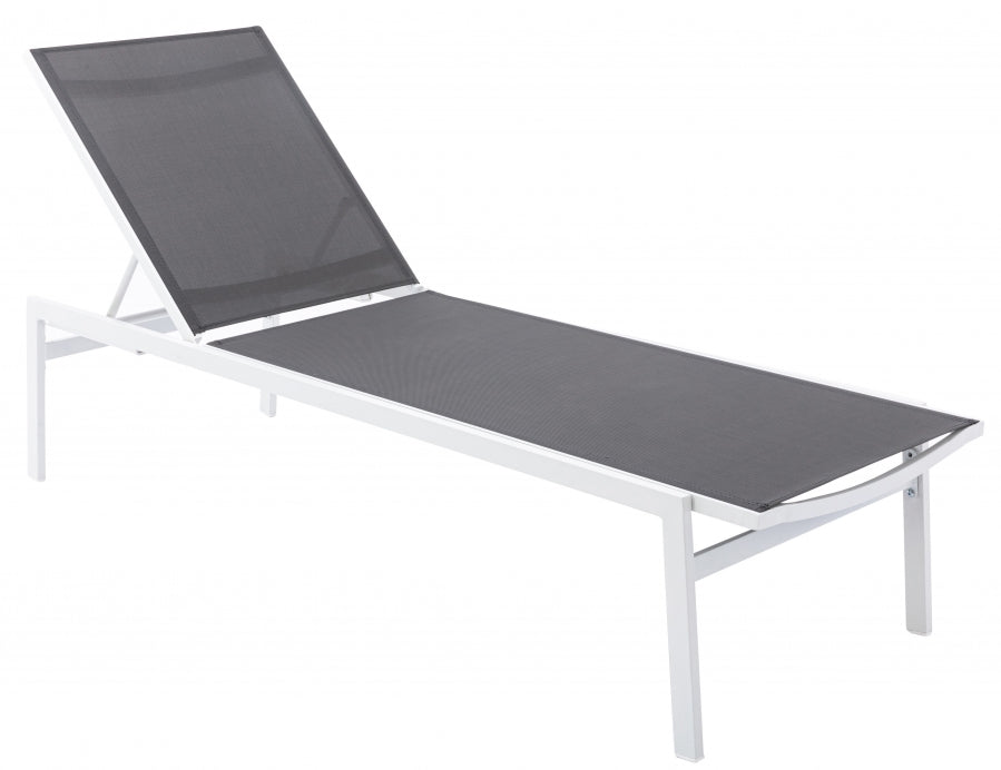 Sit back, relax, and let the cares of the day float away when you're stretched out in this Santorini Outdoor Patio Chaise Lounge Chair. This stunning chair is just the thing for sunworshippers to lie upon while catching a few rays. A sturdy White aluminum frame gives it a resilient touch, and the lounge chair is adjustable, so you can easily get comfortable grey Mesh waterproof fabric completes the look and adds to the chair's airy feel.