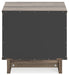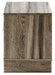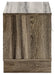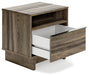 Your modern sanctuary is within reach. The subtle design of this nightstand is accented with a low profile base. Its weathered brown finish is complemented with refined champagne-colored handles on the smooth-gliding drawers. An open shelf provides additional bedside storage.