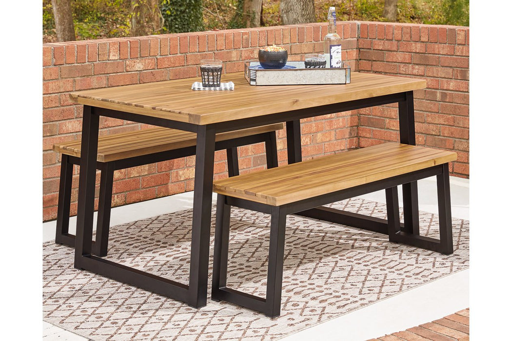 Town Wood Brown/Black Outdoor Dining Table Set (Set of 3) | P220-115 | Signature Design by Ashley® | Lara Furniture