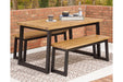 - 3-piece outdoor furniture set includes dining table and 2 benches